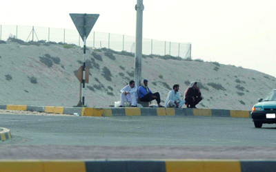 عمال يفترشون الأرصفة بحثاً عن عمل مؤقت. من المصدر