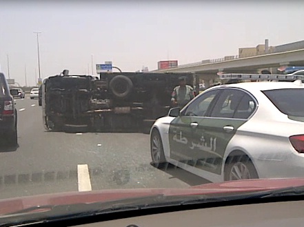 انقلبت شاحنة على شارع الشيخ زايد، اليوم، بالاتجاه المؤدي إلى إمارة دبي، ما تسبب في ازدحام مروري وعرقلة لحركة السير.