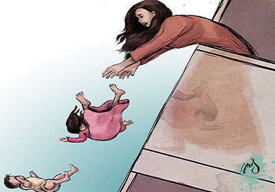 وكان الرضيع (محمد)، أفلت أولا من يد والدته، وحين حاولت إنقاذه، سقطت طفلتها (فاطمة) لتلقى مصرعها فورا.