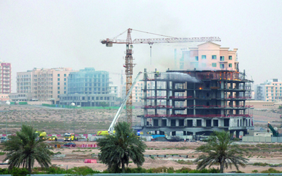 شب حريق، مساء أول من أمس، في مبنى تحت الإنشاء مواز لطريق دبي العين، مقابل منطقة واحة دبي للسيلكون.