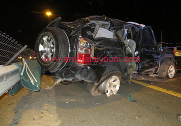 وقال الزفين لـ" الإمارات اليوم" أن الحادث وقع عند الساعة 10:30 مساء، حين انحرفت المركبة المزودة، وهي من طراز نيسان باترول، من أقصى اليمين إلى أقصى اليسار على الشارع، واقتحمت الحاجز الحديدي بين المسارين لتستقر في الاتجاه المؤدي إلى الشارقة، ويطير سائقها على بعد 40 متر منها.