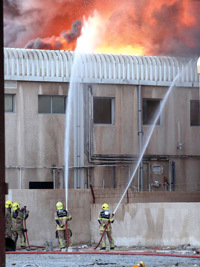 قوات الدفاع المدني تحاول السيطرة على الحريق. تصوير: باتريك كاستيلو