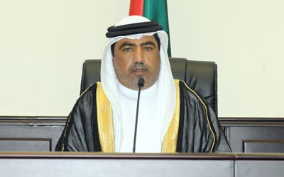 القاضي المستشار محمد الجراح الطنيجي يتوسط الهيئة القضائية. أرشيفية