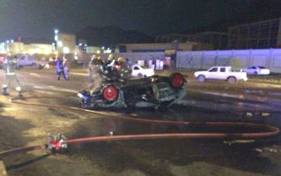 نجاة مواطن تدهورت سيارته واحترقت