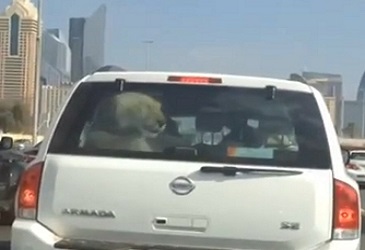 انتشر على نطاق واسع على موقع "يوتيوب" وعبر تطبيقات الدردشة ومواقع التواصل الاجتماعي، مقطع فيديو لأنثى أسد "لبؤة" تتحرك في المقعد الخلفي من مركبة رباعية الدفع من طراز "نيسان أرمادا"، ويظهر عبر الفيديو، أن المركبة تتحرك على شارع الشيخ زايد في دبي، وزاد عدد مشاهدي الفيديو أكثر من 500 ألف مشاهدة منذ تحميله، فيما لم يتحدد تاريخ تصوير الفيديو.