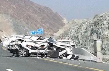 المركبة تعرضت لأضرار بالغة، إثر اصطدامها بالحاجز الإسمنتي. من المصدر