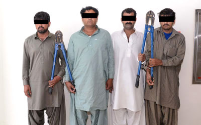 4 متهمين من أفراد العصابة مع معدات السرقة. من المصدر