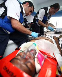 وقال إن المؤسسة تُخضع مسعفيها لدورات تدريبية كاملة في التعامل مع مختلف انواع الإصابات والحوادث، موضحاً ان التدريبات تشمل الحوادث المتكررة في الدولة، والحوادث المحتملة، والنادرة، بما يجعلهم في حالة تأهب مستمر للتعامل مع أي طارئ.