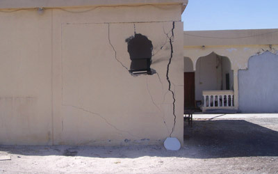 وقال المزروعي، لـ «الإمارات اليوم» إنه سمع في التاسعة صباحاً، صوت ارتطام قوي داخل غرفة بالمنزل، فأسرع لاستطلاع الأمر، واكتشف أن جزءاً من جدار الغرفة انهار، وفي داخلها إطار شاحنة، فحمدالله على عدم وجود أحد في الغرفة حينها، مشيراً إلى أن الجدار بالكامل أصبح آيلاً للسقوط بسبب التصدعات العميقة التي أحدثها الإطار.