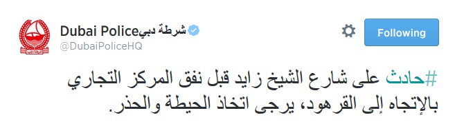 ودعت شرطة دبي لتوخي الحيطة والحذر اثناء القيادة.