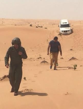 وكان قسم جناح الجو في الشارقة تلقى بلاغاً من غرفة عمليات شرطة الشارقة؛ يفيد بوجود سيارة ذات دفع رباعي عالقة في الصحراء في منطقة الفاية التابعة لمدينة الشارقة.