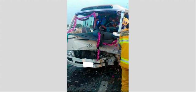 وأشار إلى أن الحادث أسفر عن إصابة 20 شخصاً، بينها إصابتان بليغتان، هما سائقا المركبة والحافلة، فيما راوحت الإصابات الأخرى بين الطفيفة والمتوسطة، وتم نقل 13 مصاباً إلى مستشفى الشيخ خليفة في إمارة عجمان، والآخرين إلى مستشفيي القاسمي والكويت في الشارقة، بالإضافة إلى نقل مصاب إلى مستشفى الشيخ خليفة في أم القيوين.