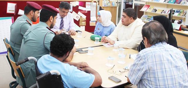فريق «المناصرة الذاتية» يجتمع مع شرطة الشارقة لمتابعة مجريات الحملة. من المصدر
