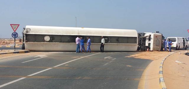 انقلاب شاحنة محملة بالديزل في رأس الخيمة