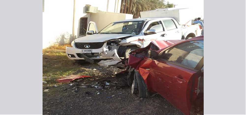 أصيب أربعة آسيويين بإصابات بليغة في حادث تصادم بين مركبتين على طريق سهيلة - الذيد بالمنطقة الوسطى مساء أول من امس قبل دوار الشريف، حين غفل قائد المركبة الآسيوي ففقد السيطرة عليها وانحرفت بقوة من اقصى اليمين إلى اقصى يسار الطريق، حيث دخل إلى الاتجاه المعاكس واصطدم بسيارة أخرى، وتم نقل المصابين إلى مستشفى الذيد لتلقي العلاج.