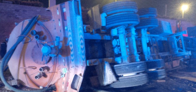 حادث انقلاب شاحنة. من المصدر