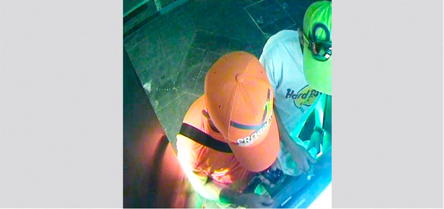 المشتبه فيهما يحاولان زراعة جهاز إلكتروني داخل إحدى ماكينات الصرّاف الآلي. من المصدر