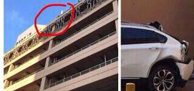 وفاة امرأة سقطت بسيارتها من الطابق السادس