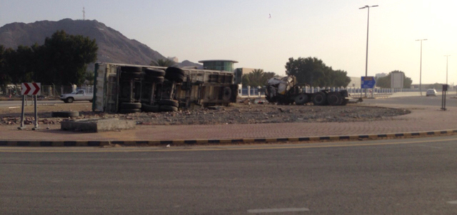 الشاحنة احترقت بعد تدهورها. الإمارات اليوم