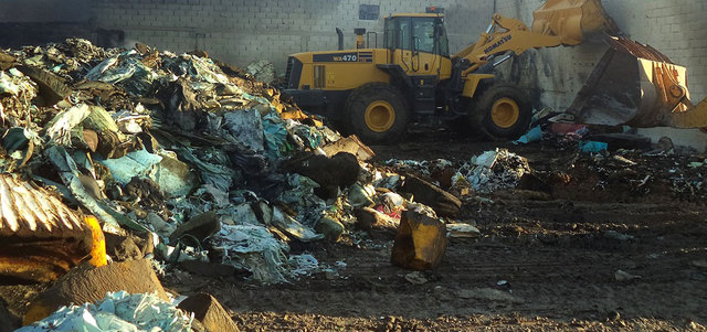 رجال الإطفاء تمكنوا من إخماد النيران مرتين أسفل كميات الإسفنج في المستودع المحترق. من المصدر