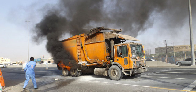 حريق في شاحنة لنقل النفايات في رأس الخيمة