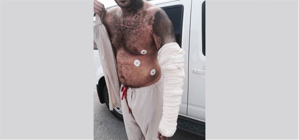 وأفاد شقيق المصاب فهد مصبح الكعبي، محمد مصبح، بأن شقيقه يبلغ من العمر 28 عاماً، ويرقد حالياً في حالة حرجة داخل مستشفى راشد، إثر تعرضه للرش بسائل حارق على عينيه وحلقه وصدره وظهره.
