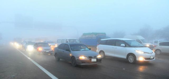 شرطة أبوظبي تدعو السائقين إلى توخي الحيطة والحذر عند تشكّل الضباب. من المصدر