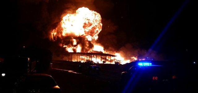 ألسنة اللهب تتصاعد من موقع الحريق. من المصدر