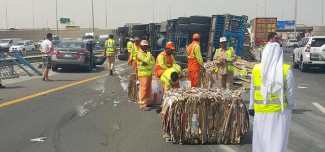 انحرفت شاحنة محملة ببضائع مختلفة عن مسارها الصحيح، وتدهورت على شارع الخيل تجاه أبوظبي، وفق مدير الإدارة العامة للمرور في شرطة دبي، العقيد سيف مهير المزروعي، الذي أشار إلى أن الحمولة تناثرت على الطريق، وأدت إلى إغلاق مساراته وتضرر مركبتين. وقال المزروعي إن الدوريات انتقلت إلى موقع الحادث، وأشرفت على تنظيم حركة السير، وإزاحة الحمولة عن الطريق.