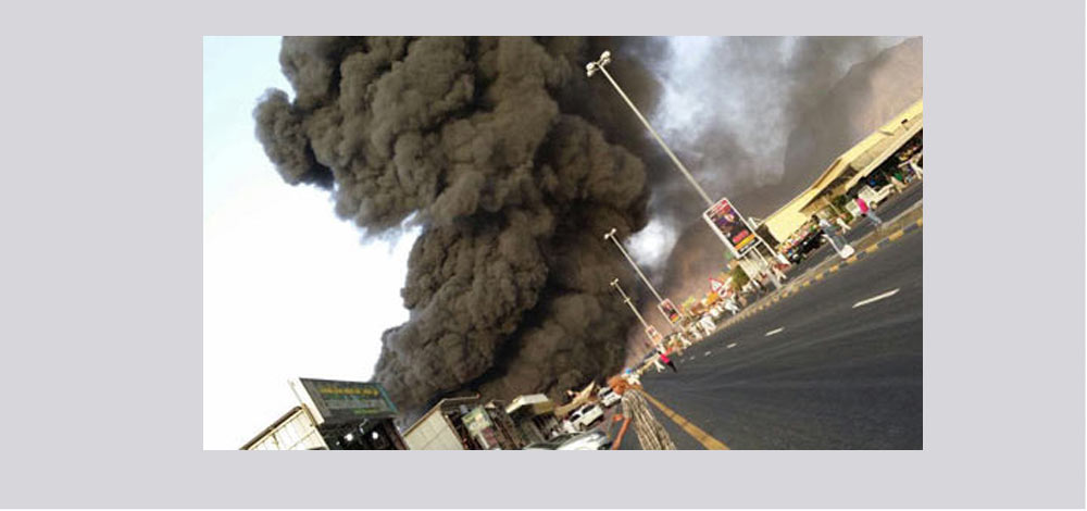 اندلع حريق ضخم في سوق الجمعة بمسافي التابعة لإمارة الفجيرة مساء اليوم، وتسبب الحريق في إتلاف محتويات 13 محلا ولم تسجل أي إصابات بشرية أو حالات اختناق، بحسب مدير إدارة الدفاع المدني بالفجيرة العقيد علي عبيد الطنيجي.