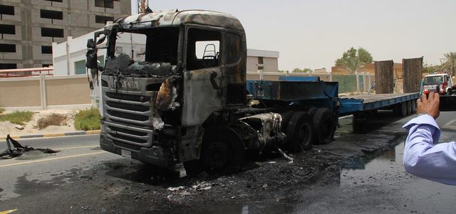 احتراق شاحنة على شارع الشيخ زايد في عجمان