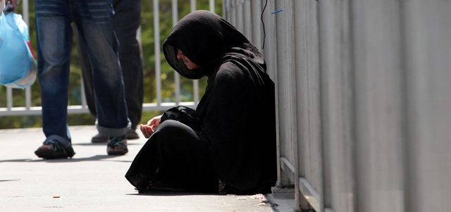 امرأة تخفي «لاند كروزر» وراء مسجد وتتسوّل أمامه