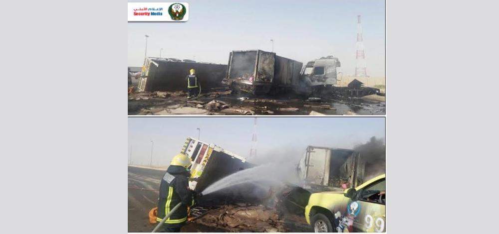 شب حريق صباح اليوم في 3 مركبات على طريق الشاحنات في أبوظبي، باتجاه الفاية، وتمكن رجال الدفاع المدني من السيطرة على الحريق.