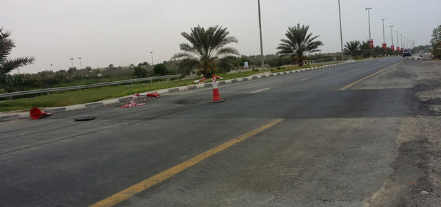 «دائرة الأشغال» وضعت إشارات تنبيه أمام الحفرة. الإمارات اليوم