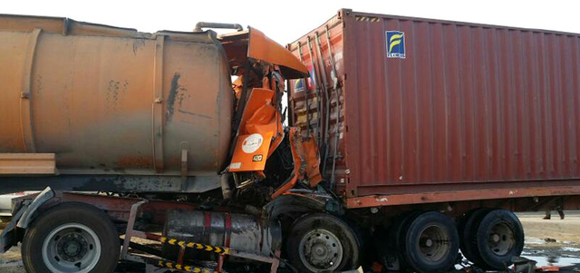 حادث اصطدام بين شاحنتين على شارع الخيل. من المصدر
