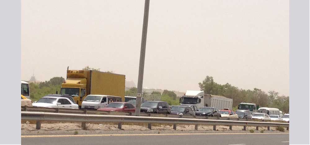 تدهور شاحنة محملة بالرمال على شارع دبي العين