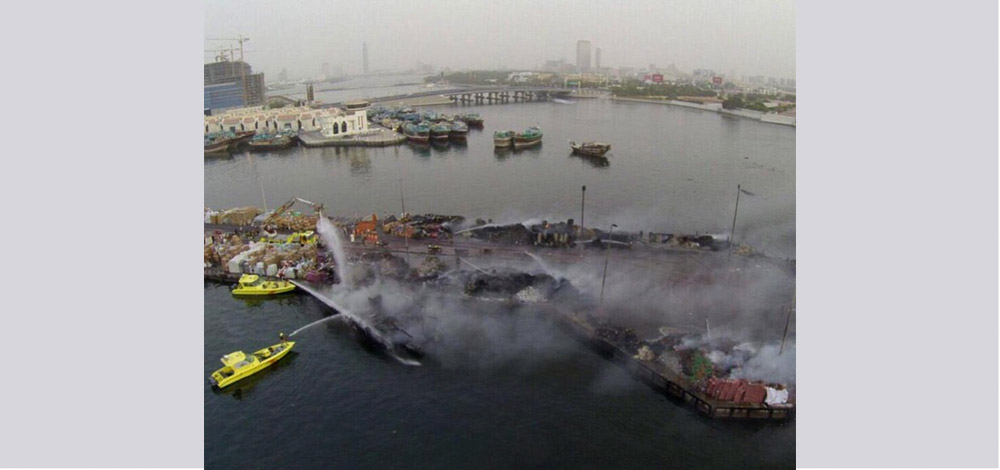 "جمارك دبي": السيطرة على حريق الخور تمت بسرعة قياسية