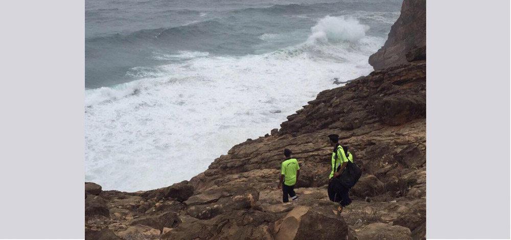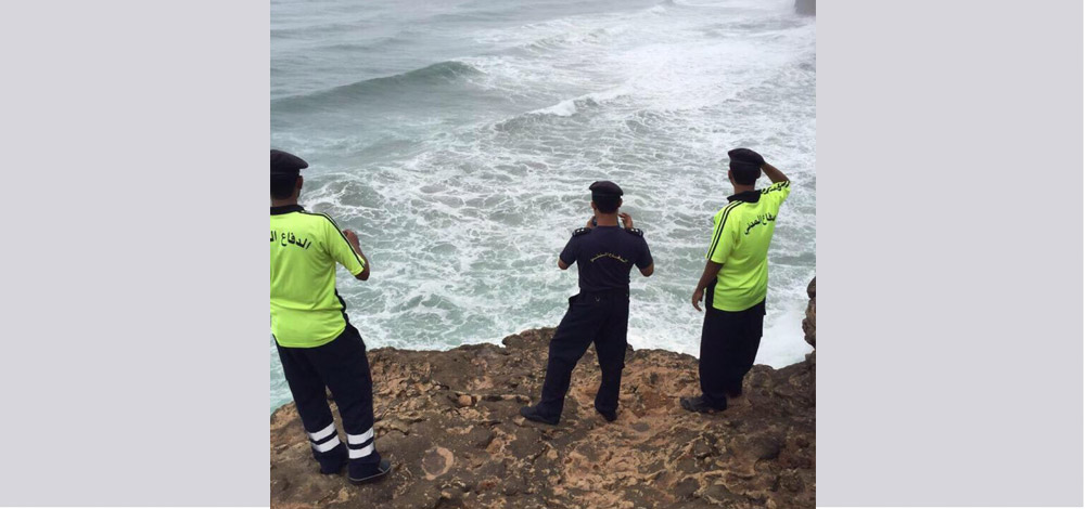 وتسيّر فرق الإنقاذ دوريات راجلة بالقرب من صخور شاطىء الدمر الذي شهد حادثة الغرق، والواقع في ولاية مرباط في محافظة ظفار، أملا في العثور على المفقودين.