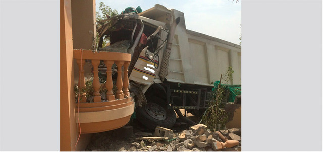 شاحنة تقتحم سور منزل وتصدم المبنى الداخلي