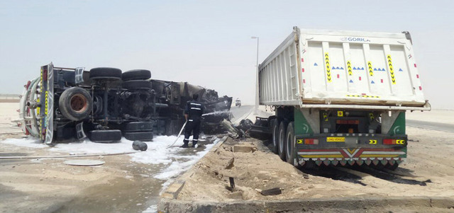 وتفصيلاً، قال مدير إدارة مرور الطرق الرئيسة في مديرية المرور والدوريات في شرطة أبوظبي، العقيد حمد ناصر البلوشي، لـ«الإمارات اليوم»، إن غرفة العمليات تلقت بلاغاً أول من أمس، يفيد بوقوع تصادم بين شاحنتين على طريق الطويلة في أبوظبي، فانتقلت إلى موقع الحادث دوريات المرور والإسعاف، وقامت بتأمين الحركة المرورية.