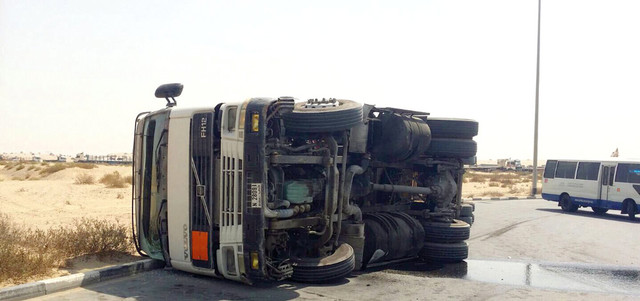 شاحنة تعرضت للانقلاب خلال الضباب في منطقة الورسان. من المصدر
