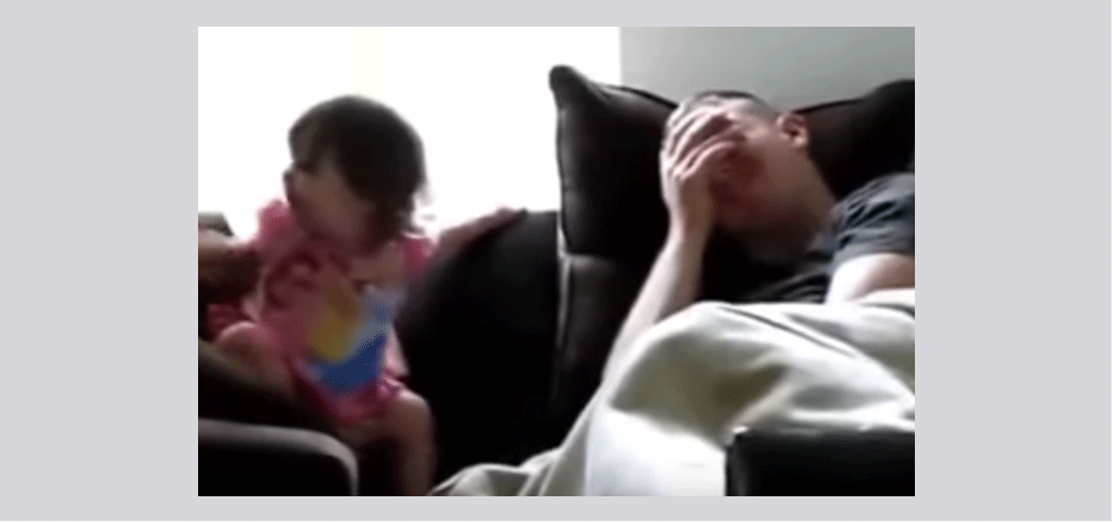 انتشر فيديو على مواقع التواصل الاجتماعي لطفلة وهي تحاول مرارا أن توقظ أباها بنعومة فائقة، إلا أن نومه العميق استفزها، فبدأت بإظهار إصرارها على إيقاظه وبوتيرة مختلفة، وصلت الى حد وضع اصبعها بعينه.