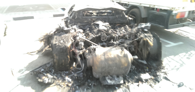 سيارة تعرضت للحريق لكن الفحص لم يثبت وجود عيوب فيها. من المصدر