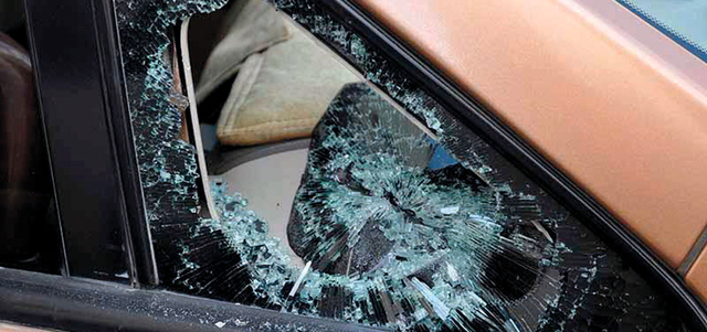 تحطيم النوافذ الجانبية لسرقة المركبات. من المصدر