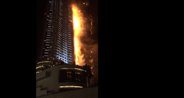 بالفيديو..حريق في فندق "العنوان" بدبي