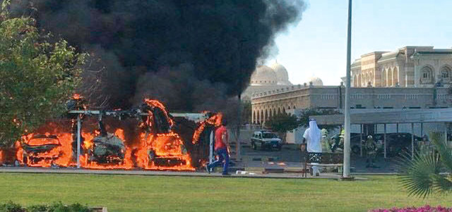 فرق الدفاع المدني تمكنت من السيطرة على الحريق في 15 دقيقة من وصولها. الإمارات اليوم