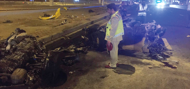 توفي أربعة أشخاص أمس، في حادث تحطم سيارة من طراز «فيراري» وانشطارها إلى نصفين واحتراقها إثر اصطدامها بعمود إنارة في منطقة أبراج بحيرات جميرا.