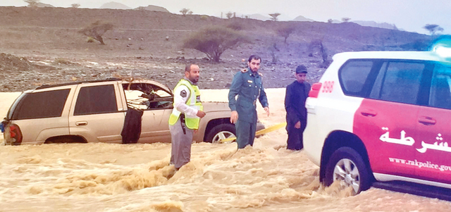 شرطة رأس الخيمة تسحب 21 مركبة جرفتها مياه الأودية