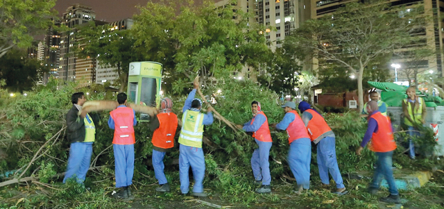 وأكدت بلدية العين إزالة الأشجار المتساقطة في الطرق، وفتح مناهيل المياه ونقل مخلفات الأشجار والتعامل مع جميع البلاغات الواردة من مركز طوارئ بشكل كامل.