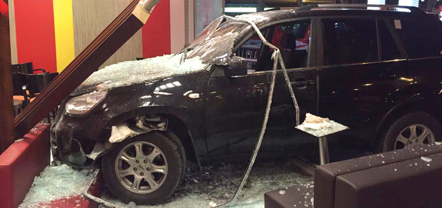 السائقة ضغطت على دواسة الوقود بدلا عن مكابح التوقف. من المصدر